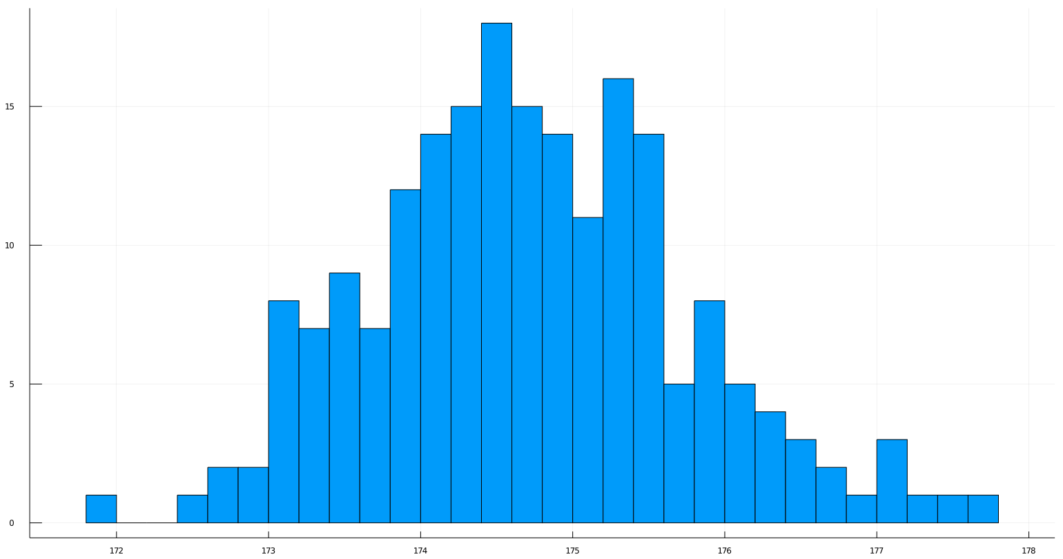 Plots.histogram(sample_means, bins=num_bins, label=false)